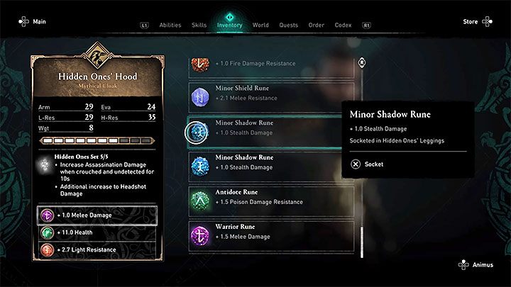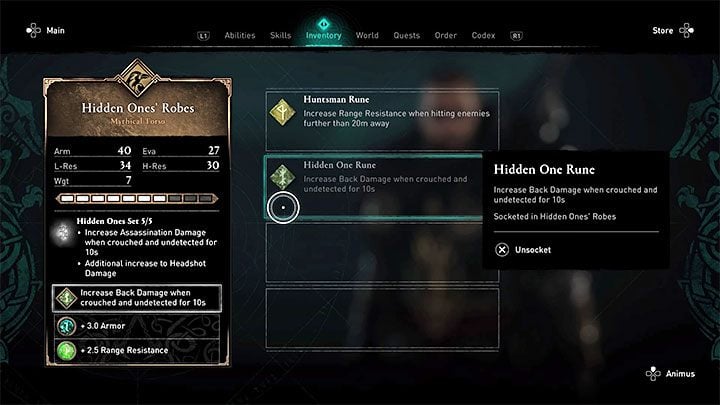 If you have been exploring Assassin / Hidden Offices bureous to complete the Hidden Ones' set, you should also have the Hidden Ones' rune. This rune will guarantee increased back-stab damage, but only when hidden and unnoticed for at least 10 seconds before the stealth attack. Unfortunately, you can only put it in the slot if you have upgraded one of the items to the highest, mythical quality.