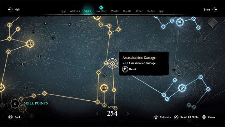 In addition to unlocking the main skills, you can also choose smaller stat bonuses, which will help you play as an efficient assassin. Useful stat bonuses: