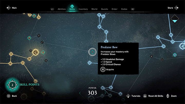 Similarly, if you have listened to our advice and started using the predator bow to deal very large amounts of damage to individual enemies, you can look for bonuses related to this particular bow variety on the tree. Selecting them will make the predator bow do more damage and improve its rate of fire and chance of critical hits.