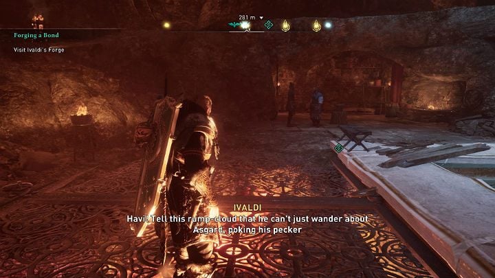As soon as you enter Ivaldi's forge, you will notice that the Builder has also come to speak with the dwarf, something the latter fellow is clearly not happy about. From your conversation with Ivaldi, you will learn that the Builder wanted information about how magic works on all Aces and Wans.