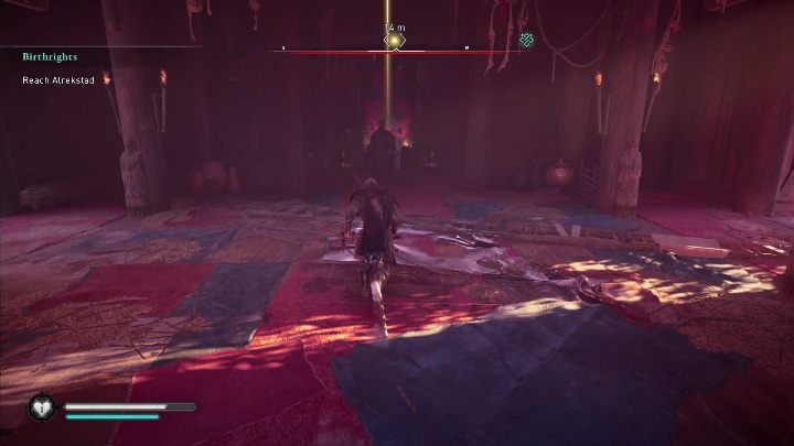 To get to the gear chest you have inside the wooden building with black and white banners hanging on it. Upon entering you will see your opponent defending his treasure. You have to defeat him, otherwise you will not get to the weapon. It is possible that during the fight a few more enemies will enter the building. Kill them all to secure your way to the chest.