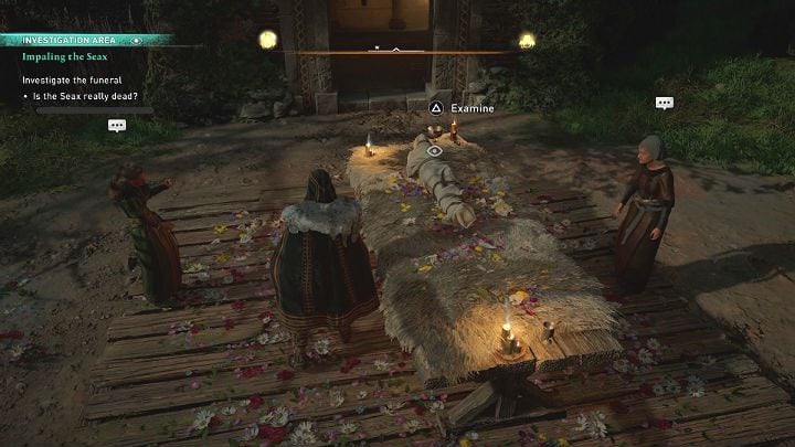 Talk to Wemba, who takes care of the cemetery. When you ask if he buried Ealhferth, he will ask if you have seen his missing friend Leof. Continuing the conversation, you will learn that it was he who was stripped of his face and wrapped in a white cloth to fake the Bishop's death.