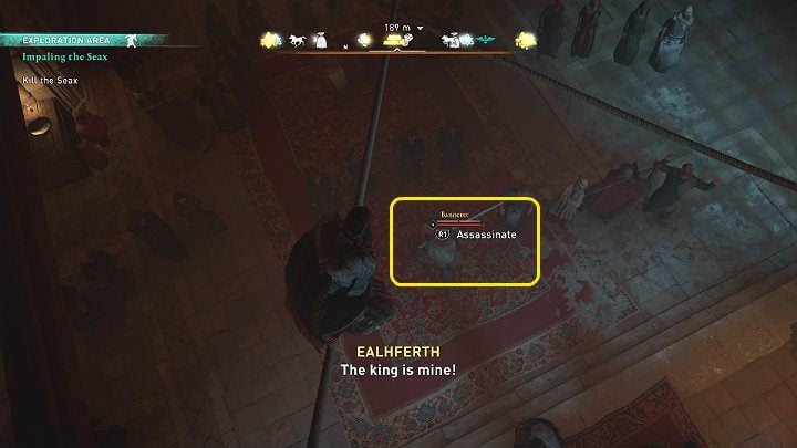 A member of the Order hides in the crowd as one of the guards and waits for the right opportunity to attack King Aelfred. As soon as Ealhferth yells and reveals his identity, attack from above and immediately finish him off with the Hidden Blade. If you do not manage to kill your opponent with a single blow, you will have to fight him.