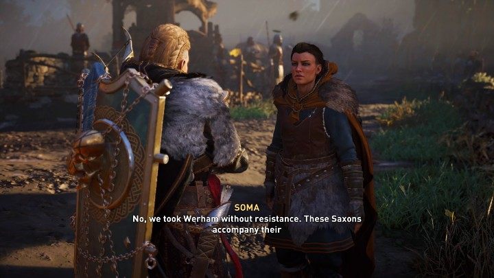 Once there, you will be greeted by Soma, who will inform you about how they managed to occupy Werham and about the current political situation, and then lead you to Guthrum.