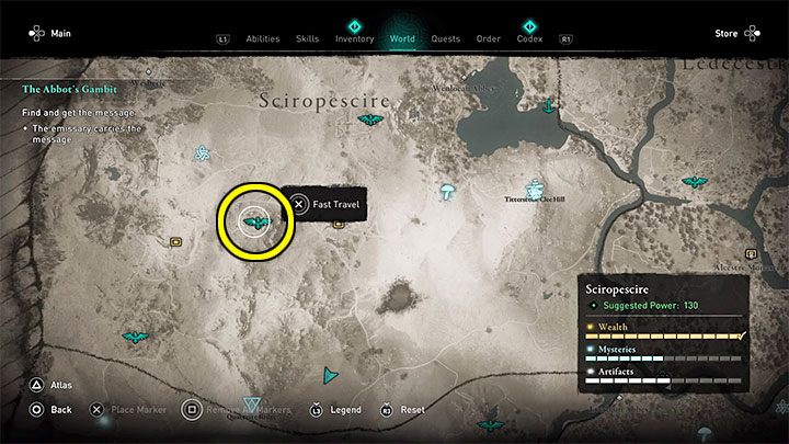 Clue 2/2 - Use quick travel to move to the tower ruins in the Sciropescire region, marked in picture number 1. Don't jump off the roof of the tower, just start climbing down slowly. On the way you will pass the open shutter from picture 2. It will enable you to get into the room with the clue.