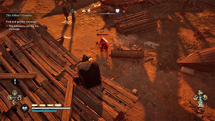 The confrontation with Audun will take place regardless of whether or not you correctly select him from the people present at the party. After poisoning the guests, the man will try to escape. Ignore the fights in the theater and go after him. You can kill him with a bow or jump him and use the blade.