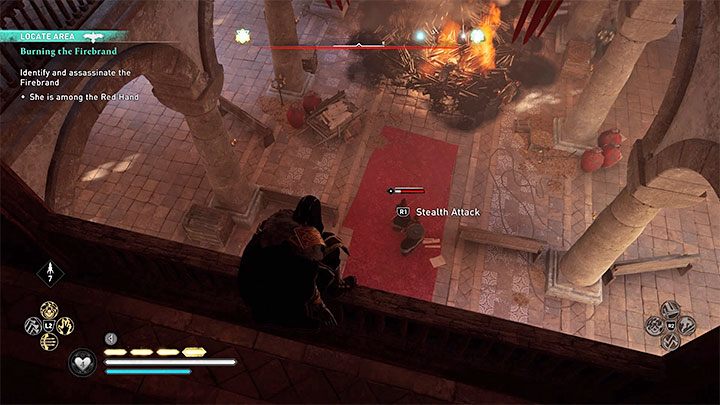Right after Ingeborg is exposed, she can be killed. Inside the building there are three women and The Firebrand is the one who does not have a yellow mark and a question mark in the name. If you have the skill called Advanced Assassination, you can drop on Ingeborg and kill her right away. Otherwise, you will face a direct fight with Ingeborg and her subordinates.