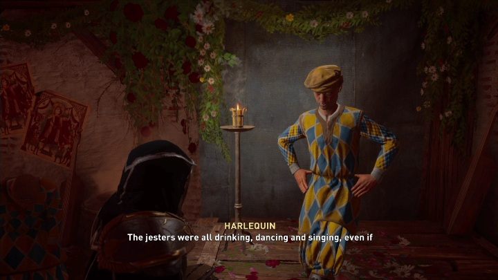 Enter the tavern and search it, making sure to talk to a few people. You should start with the jester, as he'll tell you Charles is renting a room in the tavern.
