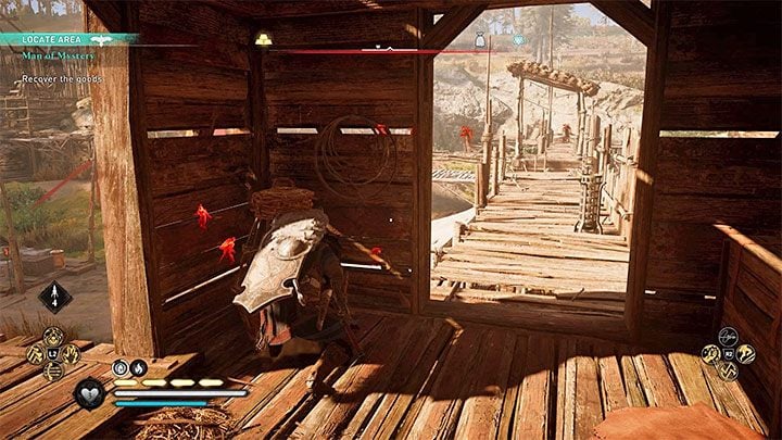 Another very helpful gadget for staying hidden is a hood that can delay detection by enemies. This applies mainly to all kinds of urban locations where, apart from civilians, there may be opponents. The hood is put on from the drop-down menu and in addition to the aforementioned detection delay, it enables you to blend in with your surroundings - you can, for example, sit on a bench or start moving together with a group of monks. We recommend using the hood if you do not want to alert the entire location and, for example, sneak your way to the mission target in a public place without starting a fight.