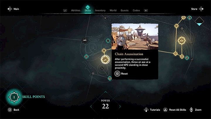In order to use this skill you have to sneak up to the first opponent, initiate a stealth attack, turn the camera towards the second nearby opponent and press the stealth attack button (R1 / RB) again to throw the axe at the target. If you have done everything correctly, 2 enemies will die and you will not alert the rest of the area.