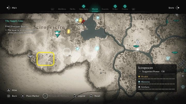 This page of the guide to AC Valhalla contains a walkthrough of the main story mission The Supply Line. In this quest you will reach the Shustone Quarry. On the spot you will burn King Rhodri's supplies.