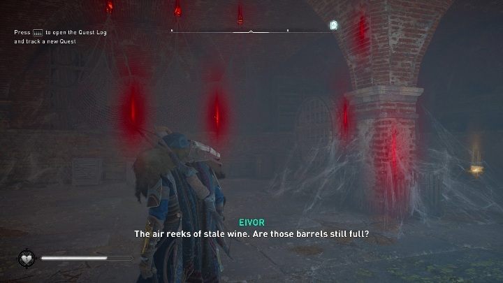 The treasure is located in the basement. To make it surface, you have to destroy the corks from wine barrels. Once the wine is spilled on the floor, the treasure will be lifted, and you'll be able to get it. This doesn't require any additional action.