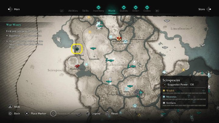 This page of the guide to AC Valhalla contains the walkthrough of the main story mission War Weary.During it you will reach Sciropescire and find Ceolbert.
