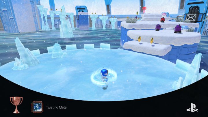 On a small snowy island, you'll notice a bot sticking a snowman. Roll one of his balls through the snow to receive this achievement.