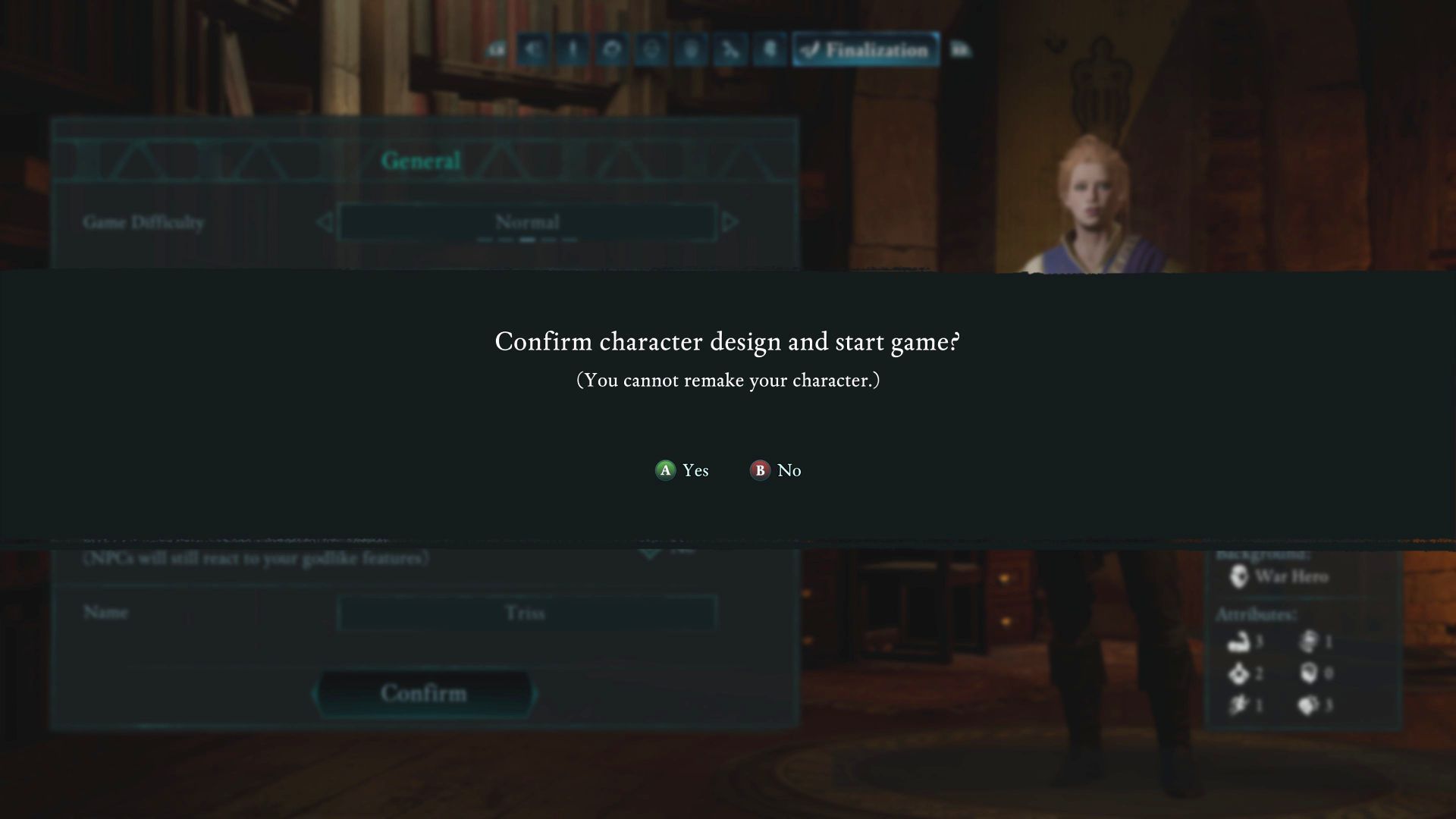 - When you start a new game, you'll launch the character creator, which lets you make all the important choices regarding your character's appearance. At the end of the creator you will receive a warning that the choices regarding the protagonist's appearance are final.