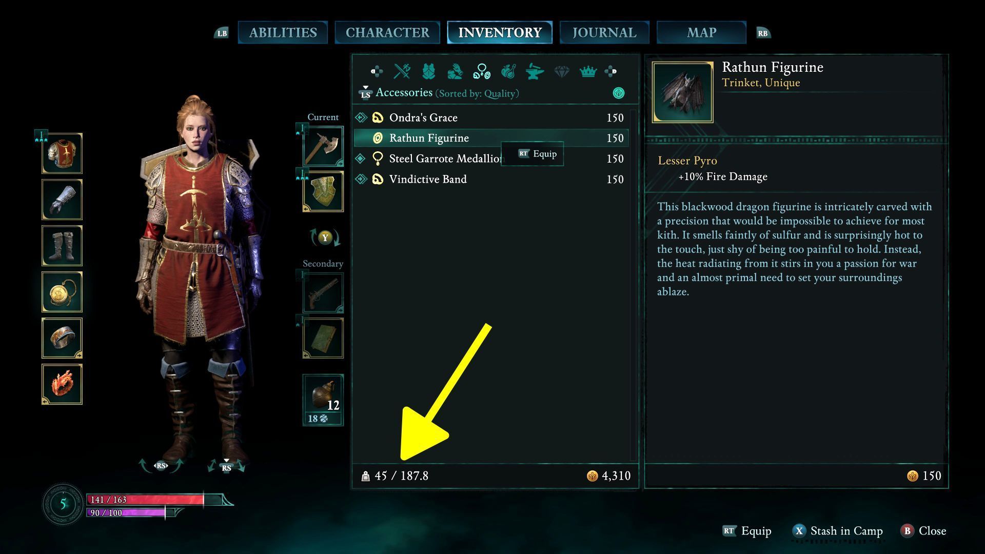 An encumbered character is a problem you may face multiple times in your Avowed playthrough. This guide page explains how to read the current weight of items, how to increase your character's carry capacity and how to recognize and put away the heaviest items from your inventory.