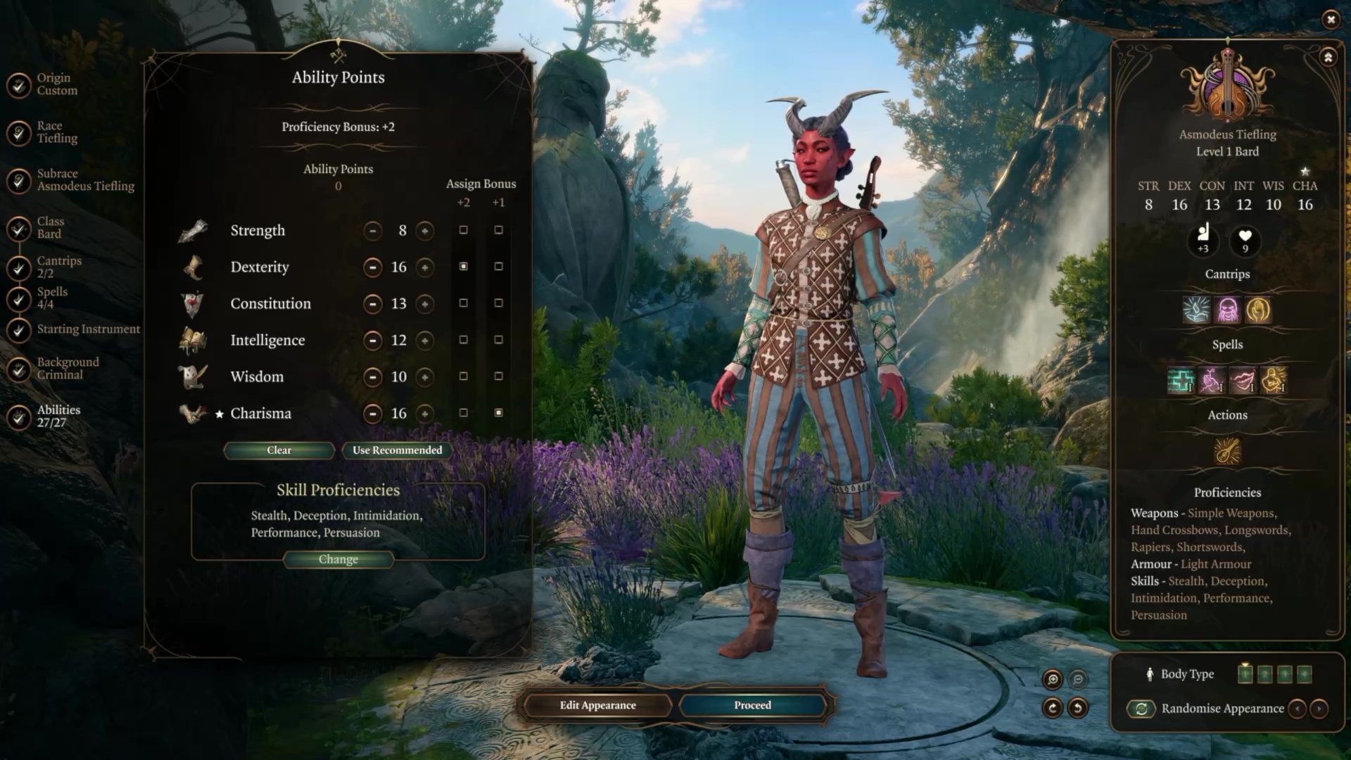 When allocating ability points, first pay attention to Charisma, since the strength of your spells depends on it. The flexible nature of the Bard class will ensure that it performs well in many tasks, so the subsequent abilities will depend on your play style. Among the options, however, you can consider: