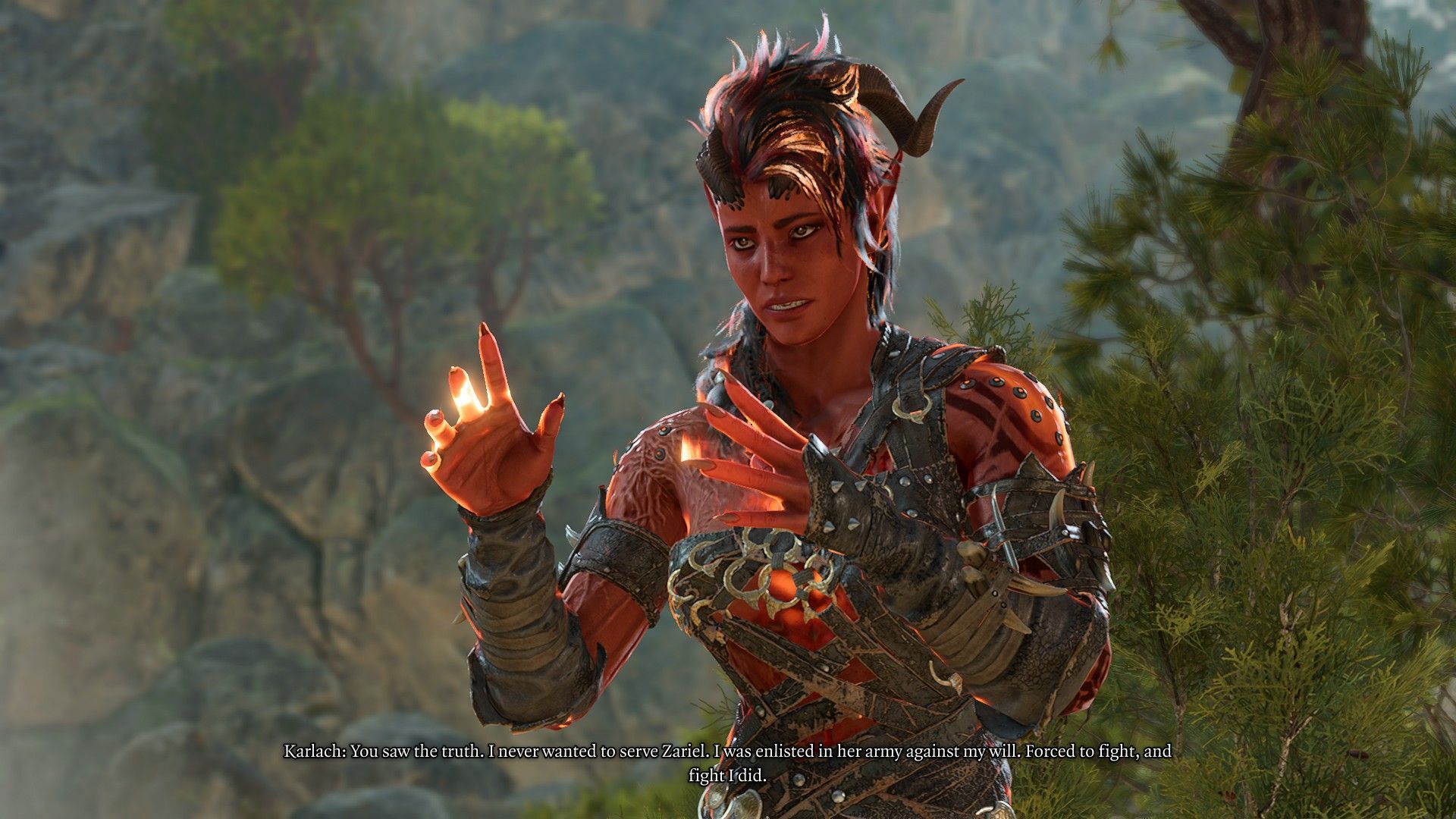 If Wyll is in your party during the conversation with Karlach, you will need to convince him to spare her. Otherwise, he will talk to her during the next time you camp. Convincing Wyll to spare Karlach will be easy and does not require skill checks.