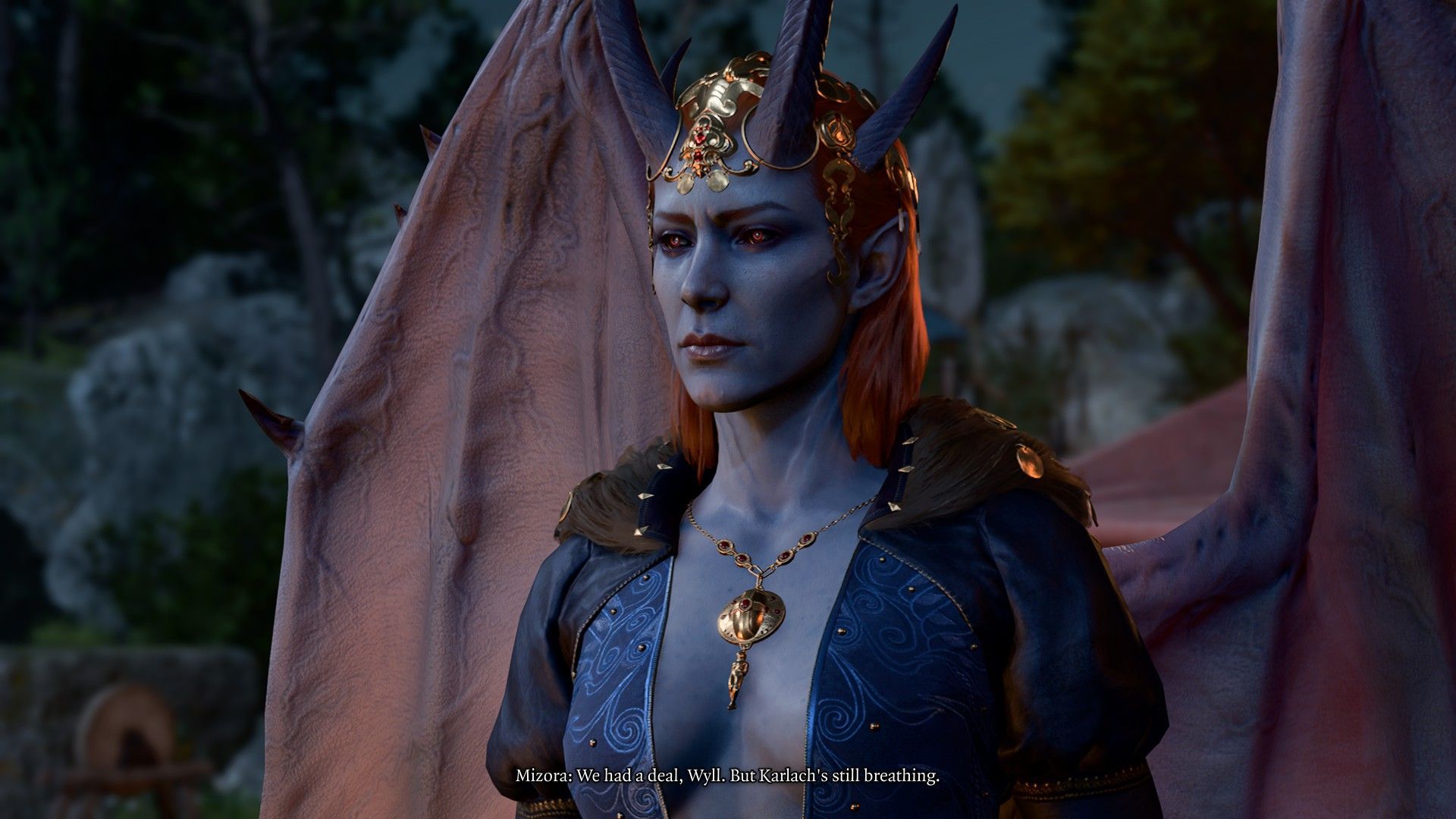 - If you spared Karlach, Mizora will transform Wyll into a half-devil. The transformation is permanent and cannot be reversed. However, it does not affect gameplay, and Wyll will still play the same way.