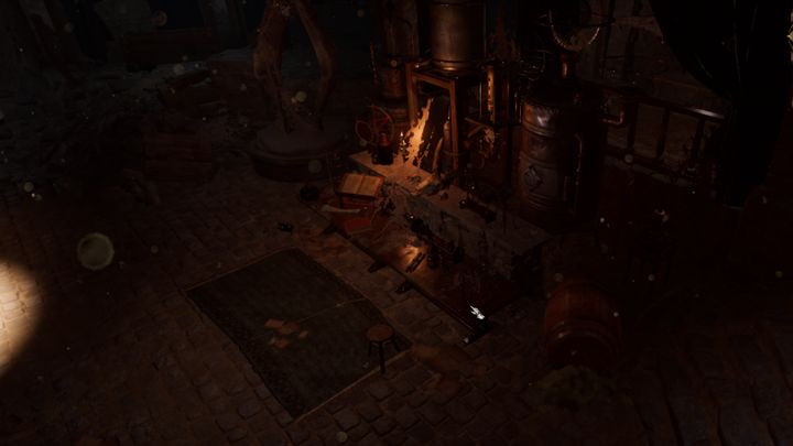 The apothecary is one of the main buildings in the Blighted Village. You will recognize it by a shop counter and many alchemical ingredients lying around. Behind the counter, there is a hatch leading to the cellar. There, you need to find a lever hidden behind three wooden crates to open a secret passage leading further.