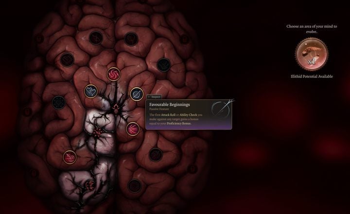 After their abduction by the Mind Flayers / Illithid in the prologue, the protagonist is implanted with a tadpole - a parasite serving as the main plotline of the game. It can grant you special, hidden abilities, unlocked relatively early on. The first strange ability you'll spot is Illithid persuasion. During some conversations you can convince the other person or even command them using an Illithid option. This is their most basic power. Note: you don't need to unlock these powers and you can even miss them entirely. It's worth knowing how to use them though, as Illithid Powers can significantly tip the scales in combat. After unlocking Illithid Powers, a special Illithid tab will appear in the character sheet, accessed with the 'B' key. You can gain skill points by consuming other found tadpoles.