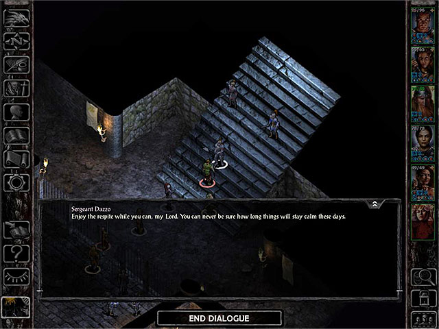 After landing below you must reach the exit from the sewers. Outside you will meet with Imoen and a few other allies. The game will show you the ending movie - congratulations!