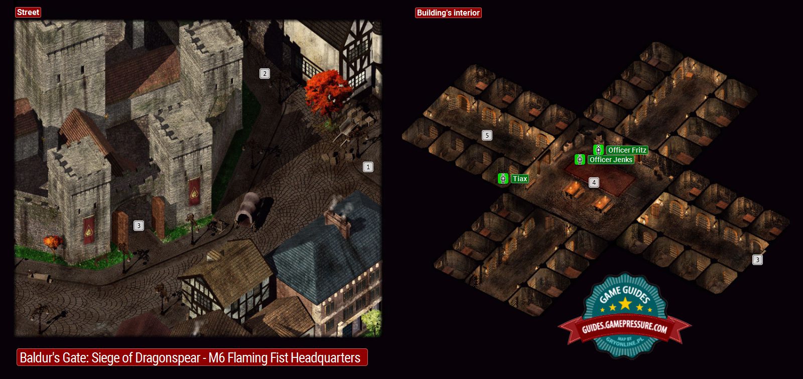 The above map shows the Flaming Fist Headquarters, one of a few additional locations available in the city. It is one of less important locations as inside the headquarters and near it you won't find anyone who would join your party. You won't complete any main quests here as well, but few side quests which you can complete if you have a spare moment are related to this place.