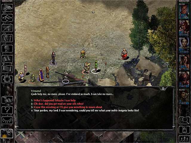 Vessanal is at the refugee camp near the burned inn - Side Quests in Coast Way Crossing - Coast Way Crossing - Baldurs Gate: Siege of Dragonspear Game Guide