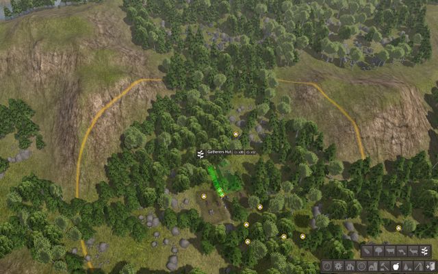 Next, you should build a gatherer's hut near a forest and make as many people as possible work there - forest is a source of large amounts of various food.