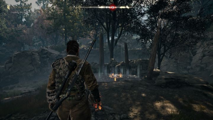 - Location: In a cave in the area west of the hunting camp, behind a stone barrier that can be destroyed with the Outburst skill.