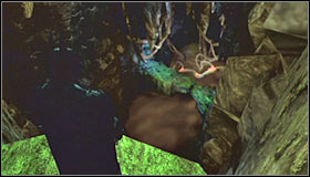 Eventually you should end up standing on a small platform. You'll have to use the Line Launcher again, this time aiming your gadget at the cliff located to the north-west of your current position. Land on a new platform safely and enter a large cave. Once you're inside glide towards a passageway located next to Ivy's roots.