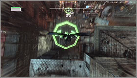 The ground level here is rising, so reaching the fourth gate #1 would normally be impossible, as sooner or later Batman would hit concrete. As a result you have to use the Grapnel Gun and grab one of the objects BEHIND the checkpoint (not on the sides!) #2. Don't worry if it will force you to turn around once again, as the only thing that matters here is flying through the fourth gate. Doing so will end the mission.