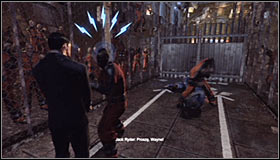You will have a short conversation with Jack Ryder #1, without a chance to influence it in any way. Wait for the gate to open and head forward. You should get attacked by two new prisoners. Use the previously learned counterattack in both cases, waiting for the icons to appear above the enemy's head #2 and pressing Y.