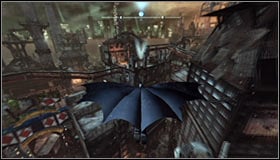 Start off by heading to the Museum substation, in the south-west part of Arkham City #1. Land on the Museum's roof #2.