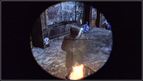 The game will automatically move to a new spot #1 and you will be forced to defeat Deadshot. Don't try leaning out, as a single bullet will instantly kill Batman. Don't use any gadgets as well, as you won't need them here. Note however, that Deadshot turns 180 degrees from time to time. Wait until he turns his back on you and quickly move to the next wall #2.