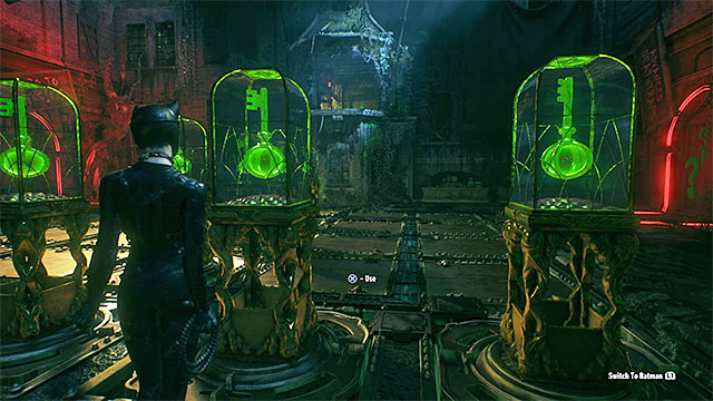 After you have won the three time trials, get out of the batmobile and go to the pressure plate. See the panel with the flashing bulbs, switch to Catwoman and find the correct capsule, basing on the panel readings - it has been shown in the above screenshot. After you have used the correct key, switch to Batman and go back to the surface.