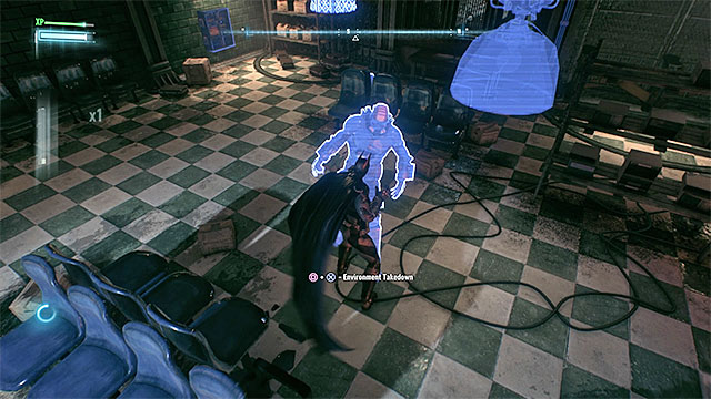 More enemies will soon start getting into the room. Watch out especially for the ones with swords (it is more difficult to hit them and to dodge their attacks). There is also another brute. Look for the medic (dressed in white) and try to eliminate him as soon as you see him. During this battle, don't try to get close to the exit, because Batman would be killed by the tanks right away.