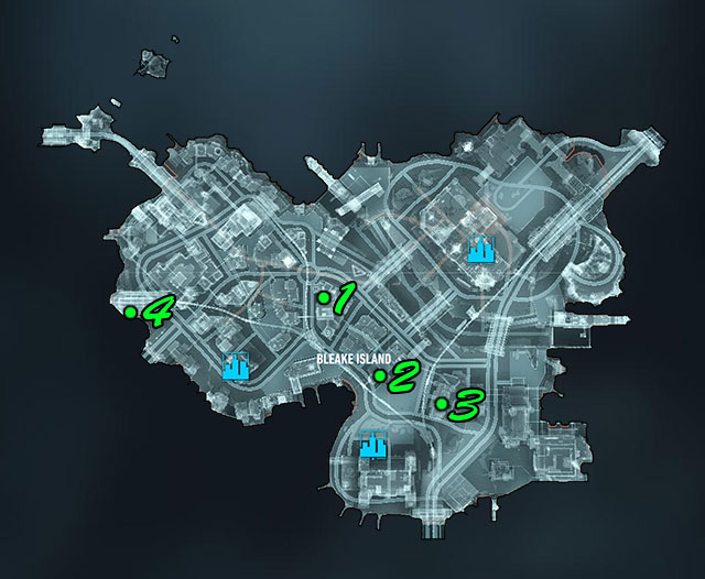 To complete this mission, you need to find a total of 21 watchtowers - 8 of them are on the Miagani Island, 4 on the Bleake Island and 9 on the Founders' Island. You can deal with the towers in any order and you need to locate them on your own. From afar, you can tell them apart by the red cones that represent the range of the turrets on them. Of course, you can also use the maps provided below.