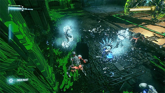 After you start fighting, attack the Riddler's blue robots only. Fortunately, they are not too heavily armed and therefore, it is a quick thing to destroy them. For the whole time, you need to keep ignoring the Riddler. You only need to watch out for the green projectiles that he fires and dodge at the right moments.
