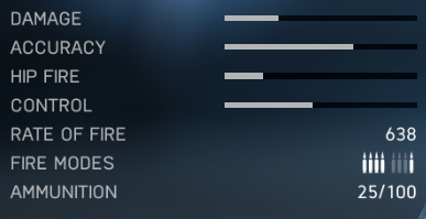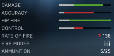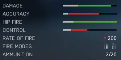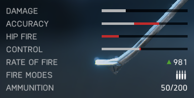Statistics | Name | Fire mode | Speed of fire (rounds per minute) | Ammunition |