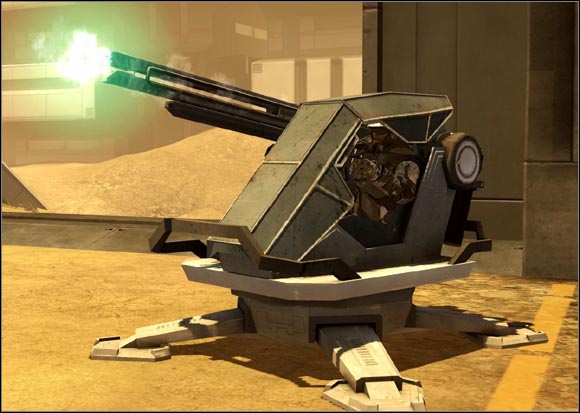 Rosch Mk-S8 is a stationary anti-armor weapon; it can be occupied by only one soldier at a time. It's quite strong and provides really nice cover from enemy infantry fire, excluding grenades and rocket launchers. Its fires a bundle of devastating energy in the directory chosen by the crosshair. After reloading, which lasts about 1,5 seconds, shooter can launch the cannon again. Rosch Mk-S8, unfortunately, characterizes by the fact that after clicking the fire key (left mouse button is set as a default one), weapon needs some time to launch the energy bundle. (about half of a second). There is also a risk, that enemy infantry will attack the cannon from the flank, where there is no armor (take a look at the picture above).