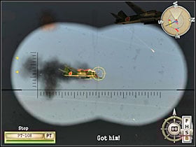 When you have left the port you'll be probably attacked by enemy fighters (they fly in pairs) practicing the hedgehopping. [#5] Shoot back: if you want to quickly send them to the ocean start shooting at first of them when he's pretty far, using the binoculars and zooming in the view. Your crew should also know exactly what is the general purpose of machineguns installed on your patrol boat, but if they don't want to use them for some reason, better check whether the "free fire" option is turned on in order's menu. [#6]