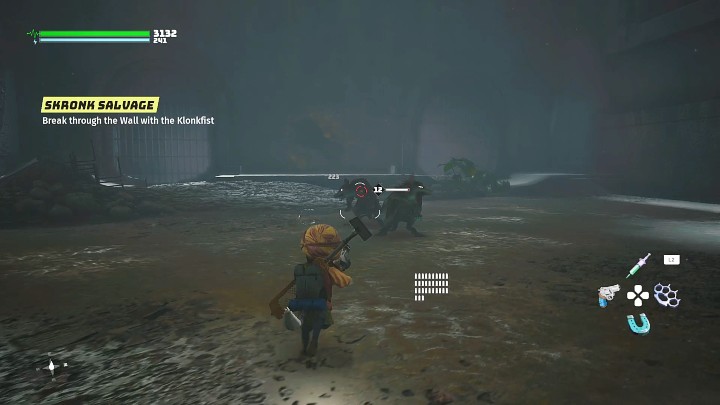 Go down to the bottom of the tank, defeat two enemies, and then use the Klonkfist from the Old World to break through the next part of this location.
