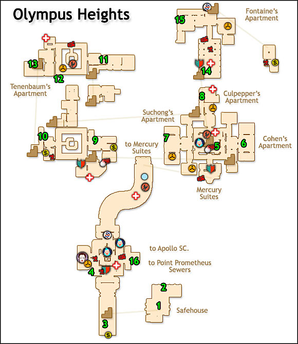 This page of the BioShock game guide contains a detailed walkthrough of Olympus Heights stage. You start the level in the sisters ' lair, and it is associated with an obstacle from the game due to active mind control. If you haven't killed Cohen before, then you can meet the artist again while exploring Olympus Heights.