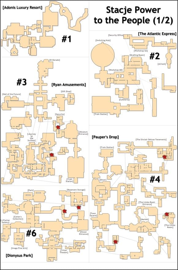 On this page of our guide to BioShock 2 you can find a high quality maps with marked weapon upgrade stations - Power to the People. We strongly recommend visiting all these stations to increase the effectiveness of your favorite firearms. Unfortunately, there are fewer stations than possible upgrades and this will not allow you to upgrade all weapons in 100%.
