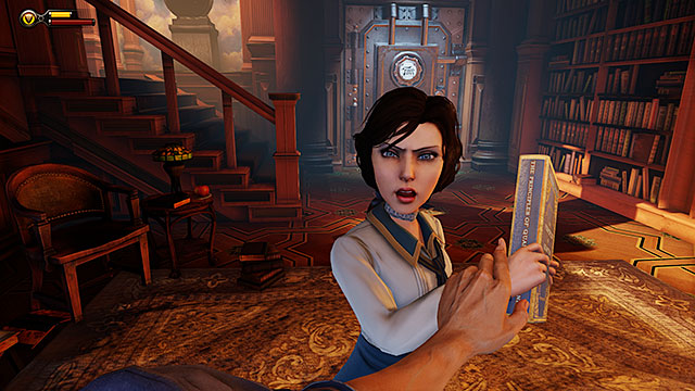 Songbird will attack you here and once the attack is over approach the elevator's frame and drop down to a staircase. Continue following Elizabeth until you both get to the top of the monument. Some dramatic scenes will take place here and once they're over you'll find yourself in Booker's office again. The solution is the same as during your previous visit in this place so you must simply open the only door.