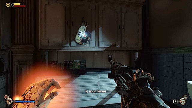 There are corpses in front of the kitchen door and on the bar and you can find a lot of ammunition. The kitchen also contains Voxophone #27: Vox Contraband Inventory - Sgt. Leander Manley. Make sure to explore the bathroom to find cipher needed to complete the side mission described at the end of this chapter.