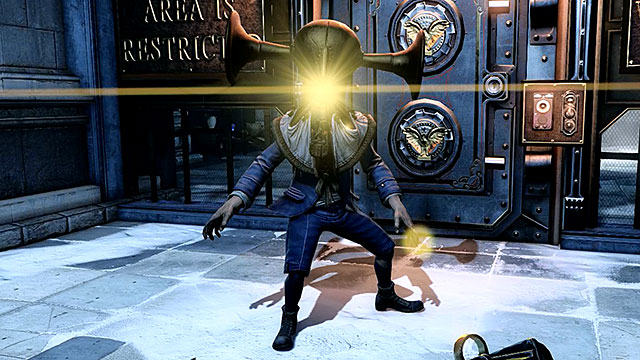 A Handyman is a fusion between a man and a machine and it's often called the new version of the Big Daddy known from the previous games in the BioShock series. Handymen move quickly and freely in the environments where they appear and that makes escaping them almost impossible. The only way to slow down the giant is to either use the Murder of Crows or the Undertow vigor.