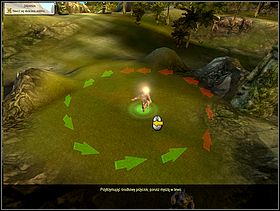 The next step in order to familiarize Yourself with all the aspects of the controls is uncovering two brown scrolls. Thanks to the two scrolls You'll learn how to move objects (in this circumstance the rocks inside the red circle) and to give out work orders to Your followers (farmer, lumberjack, parent and builder). Listen closely to Your 'conscience' because it precisely tells You how to do it.
