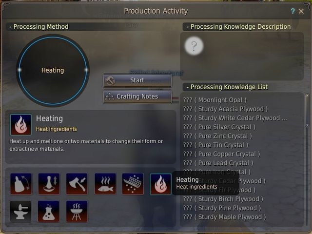 Using processing methods will grant you experience that contributes to your main level and experience points of the selected processing method. The higher the level of a given processing method, the more items you will be able to craft. For instance, the first level will allow you to produce from one to three lumps of raw sugar, while higher levels will allow you to produce more lumps. This will directly influence your financial contribution and potential income. Crafting an item for the first time will unlock the recipe that can be used at any moment. All the available recipes that are not listed, can be found in a separate window that can be activated by selecting Crafting Notes.